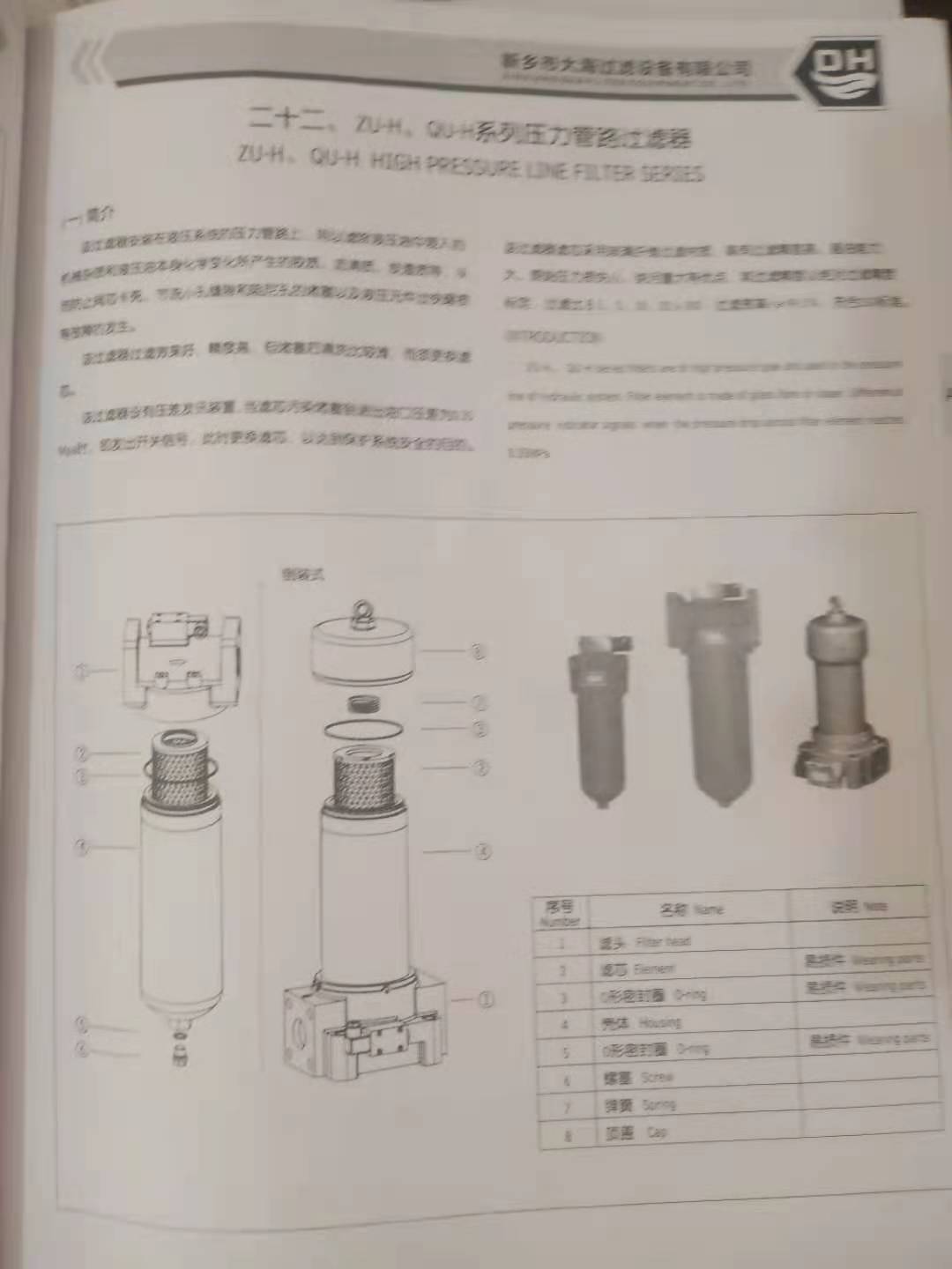 该过滤器安装在液压系统的压力管路上,用以滤除液压油中混入的 该过滤器滤芯采用玻璃纤维过滤材质,具有过滤精度高、通油能力机械杂质和液压油本身化学变化所产生的胶质、沥清质、炭渣质等,从 大、原始压力损失小、纳污量大等优点,其过滤精度以绝对过滤精度等故障的发生。